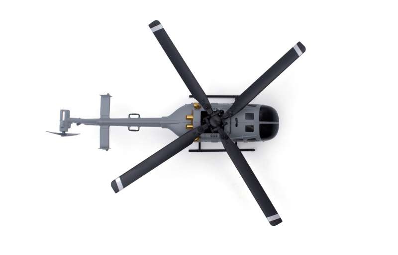 The BO-105 is quick and easy to set up and ready to fly in no time at all. Despite its incredible stability, it is light as a feather. It can fly for up to 15 minutes on a single battery charge.